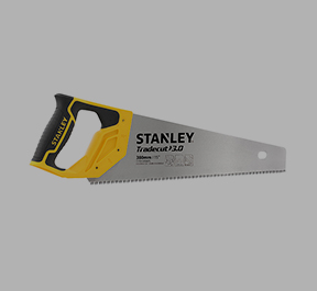 Serrote robusto para cortes rápidos e retos em madeira, plástico ou placas de gesso.